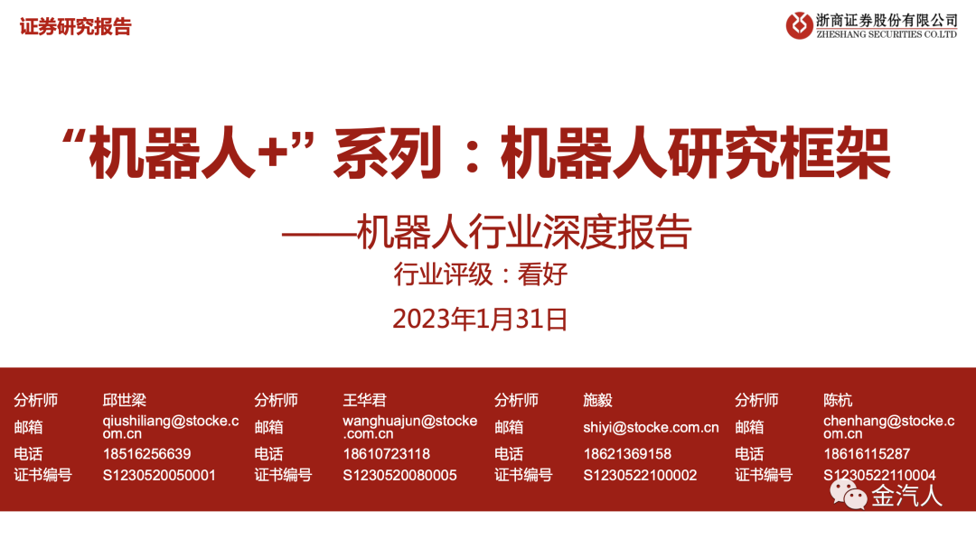 本文源自2023年1月31日浙商证券《“机器人+” 系列:机器人研究框架》。