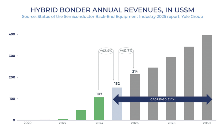 混合键合设备市场将以21.1%的年复合增长率高速增长至3.97亿美元,其高密度、细间距互连对于先进3D集成至关重要。
