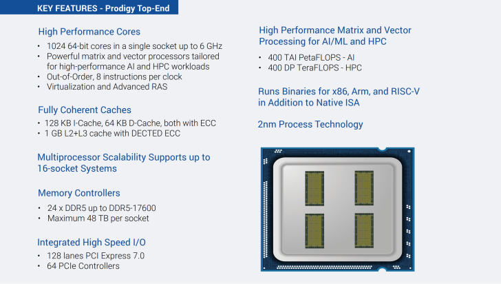 现在,随着Prodigy芯片升级至2nm工艺,显著降低了功耗。尽管2nm晶圆成本高昂,但缩小芯片尺寸仍能降低成本。Prodigy封装中的每个芯片都集成了256个高性能定制64位内核。由于多个芯片共用一个封装,因此降低功耗至关重要。在近期2.2亿美元投资的支持下,2nm Prodigy芯片正准备进行流片。