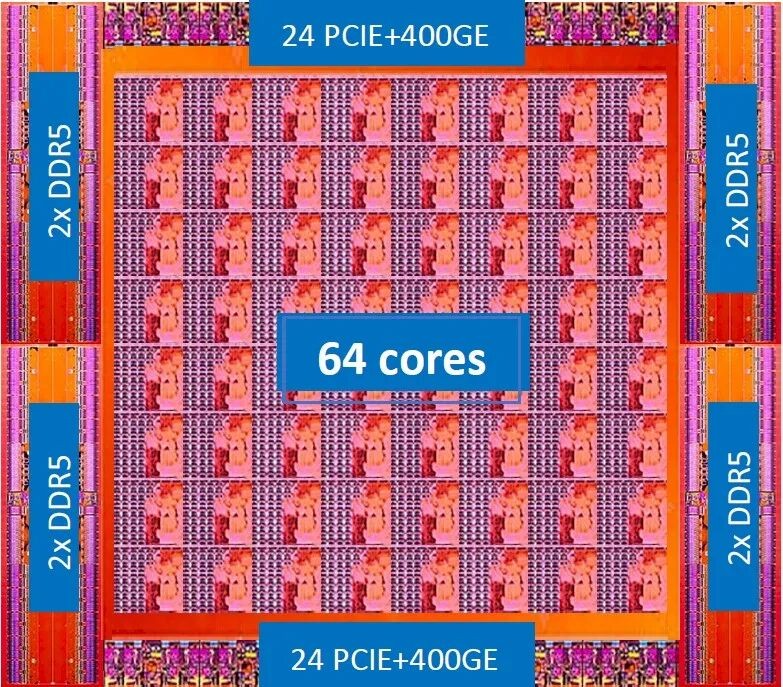 他们指出,该芯片本身集成了 128 KB 指令缓存 (I-Cache)、64 KB 数据缓存 (D-Cache)(均支持 ECC)以及 1 GB 的 L2+L3 缓存。SKU 提供 32、64、96、128、256、320、384、448、512、768 和 1024 个核心配置,TDP 则从 30W、70W、140W、150W、300W、420W、550W、645W、800W、1000W 到最高 1600W 不等。