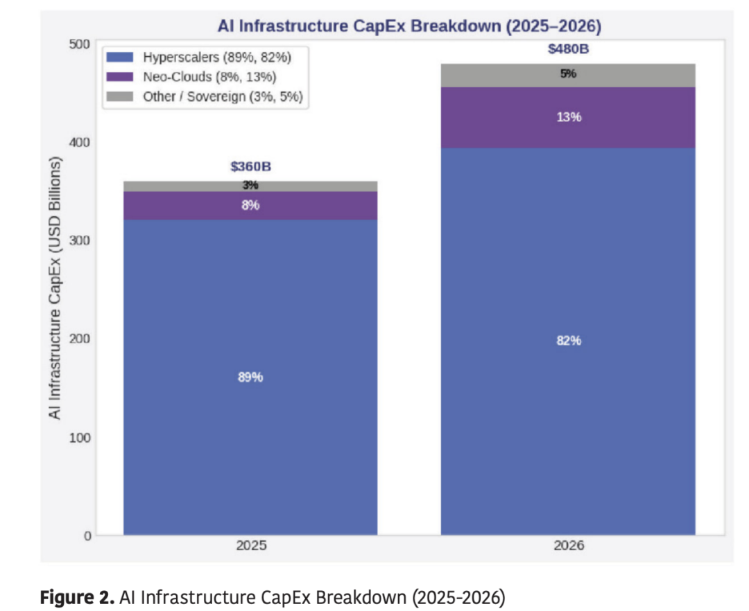 据瑞银预测,受主权国家和企业投资者(包括新兴的Neo-Cloud和国家人工智能基础设施项目)的推动,全球人工智能资本支出预计将在2025年增长60%至3600亿美元,并在2026年进一步增长33%至4800亿美元。在这个不断扩张的市场中,预计到2026年,Neo-Cloud运营商将占据全球人工智能计算投资的10%至15%的份额,从而形成多元化且加速的需求周期,并在2027年之前重塑GPU、HBM和先进封装技术的采购模式。