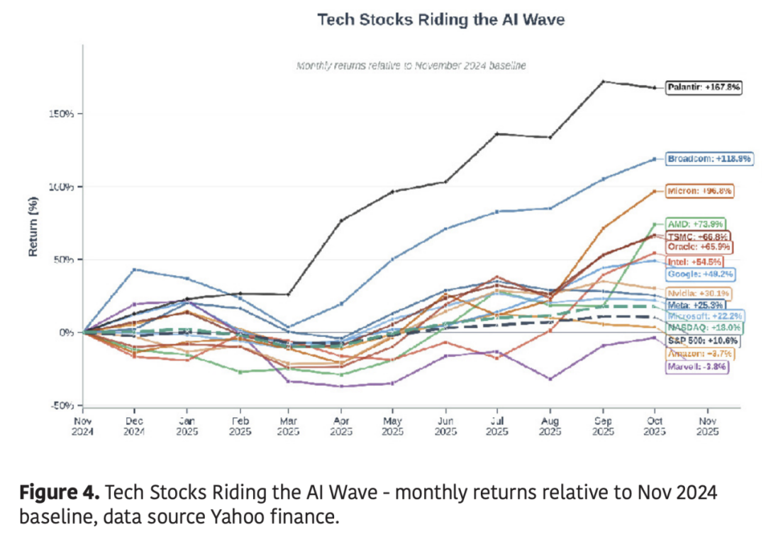 然而,在这场产业转型背后隐藏着一个更深层次的问题:人工智能投资究竟是在推动真正的经济增长,还是仅仅掩盖了潜在的脆弱性?德意志银行2025年9月的一份分析报告指出,如果没有人工智能相关的投资,美国经济可能早已陷入衰退。GDP增长、企业盈利扩张和股市上涨都过度依赖于一小部分技术资本支出。这种集中化造成了系统性脆弱性。如果由于借贷环境恶化、企业现金流减少或投资者信心下降导致人工智能支出周期停滞,其影响可能远远超出半导体供应链,波及更广泛的宏观经济稳定。