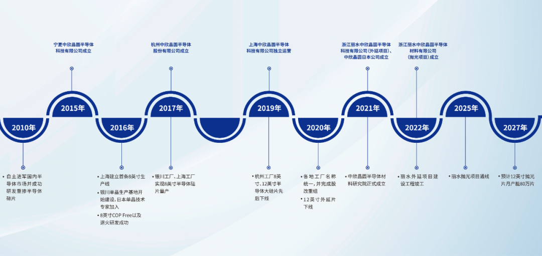 从发展脉络来看,中欣晶圆的成长史就是一部中国半导体硅片产业发展的缩影。从引进海外4-6英寸抛光片生产线与工艺技术起步,奠定早期发展根基,开启了国产硅片的探索之路。