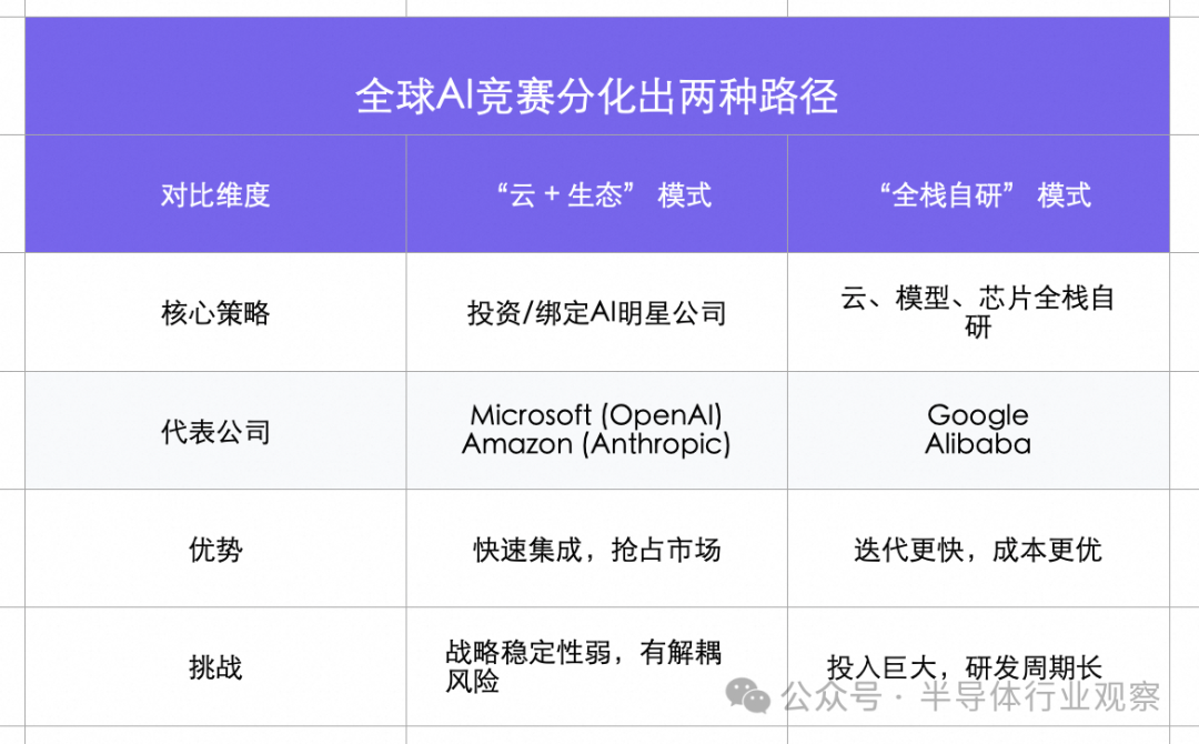 类似的故事也在谷歌发生,其依靠自研模型Gemini系列模型及自研TPU芯片,在模型能力和算力成本上形成优势,让谷歌云业务进入了高速增长期,2025年第三季度,谷歌云2025年第三季度营收为151.6亿美元,同比增长34%,增速快于亚马逊AWS和微软Azure。
