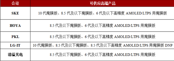 目前,光掩模版上游原材料厂商主要集中在日本和韩国,主要被日本信越化学、尼康、东曹和韩国KTG、Samsung C&T等垄断,遮光材料主要依赖日本信越化学、旭化成等。国内有数家企业有能力生产,但主要集中在中小尺寸,产品应用行业也多在 TP、PCB 等低端行业,对于半导体用高精度及高世代面板用基材,基本被日韩垄断。